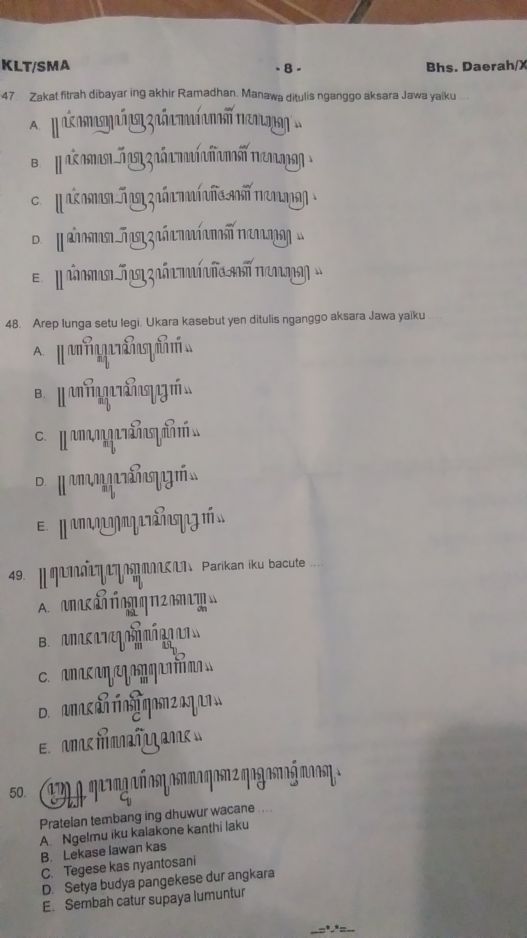 Setya budya pangekese dur angkara. Kata pengalaman, sebagaimana dapat ditafsir dari kata laku, agaknya menjadi kata kunci penting buku ini. Tata krama iku patut ditiru 2.ngelmu iku kalakone kanthi laku 3.dina setu bocah kelas wolu padha ajar nembang Sambil belajar dari para cerdik pandai . Ngelmu iku kalakone kanthi laku.